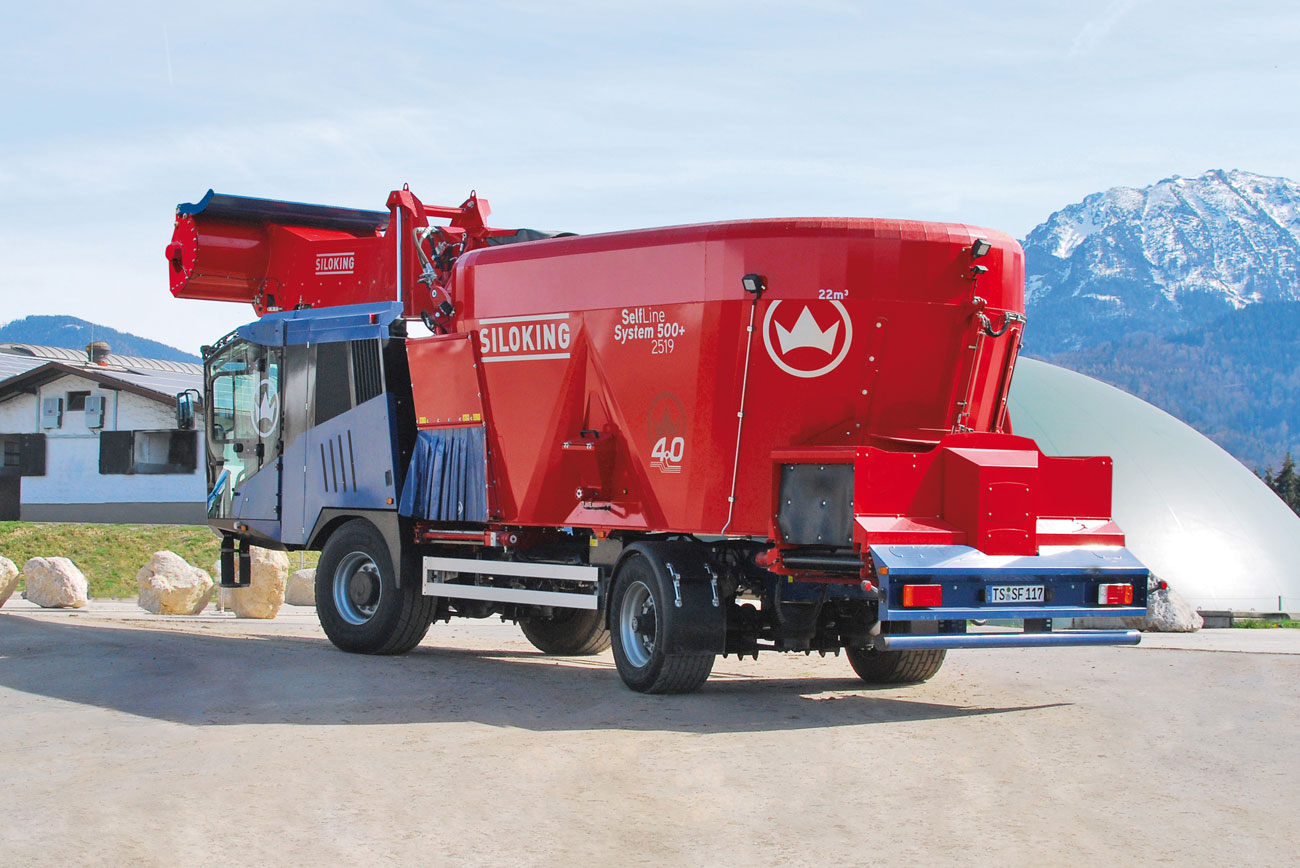 Mléčné farmy s více vzdálenými stájemi, faremní kolektivy a poskytovatelé služeb si představují samojízdný krmný míchací vůz s následujícími vlastnostmi takto: Musí být rychlý pro přepravu po silnici a zároveň obratný na farmách se zúženým prostorem. Svou rychlostí a mimořádnou obratností Vás tento moderní samochod přesvědčí za všech podmínek. Se svou průjezdnou výškou do 3 metrů, pro něj není nízká stáj žádnou překážkou. S dosahem frézy vybírací výškou max. 5,3 metru, ukazuje stroj SelfLine 4.0 System 500+ 2519 rovněž svou všestrannost.