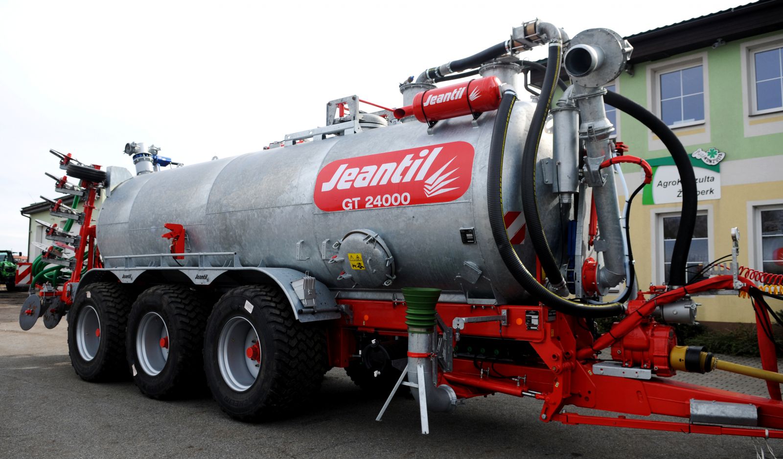 Traktorová cisterna s nejvyšším objemem z modelové řady GT s nezávislým robustním podvozkem se třemi nápravami (z toho dvě jsou natáčecí) a s hydraulickým odpružením. Jedná se o stroj s objemem tanku 24 000 l a je určen pro aplikační dávku vyšší než 6 000 m3/rok. Stroje s touto konstrukcí a velkoobjemovými pneumatikami jsou vhodné jak pro delší přejezdy po silnici rychlostí do 40 km/h, tak pro jízdu a manévrování v těžkém terénu díky sofistikované masivní konstrukci podvozku a nízkému upevnění tanku, což zajišťuje nízké těžiště a stabilitu.